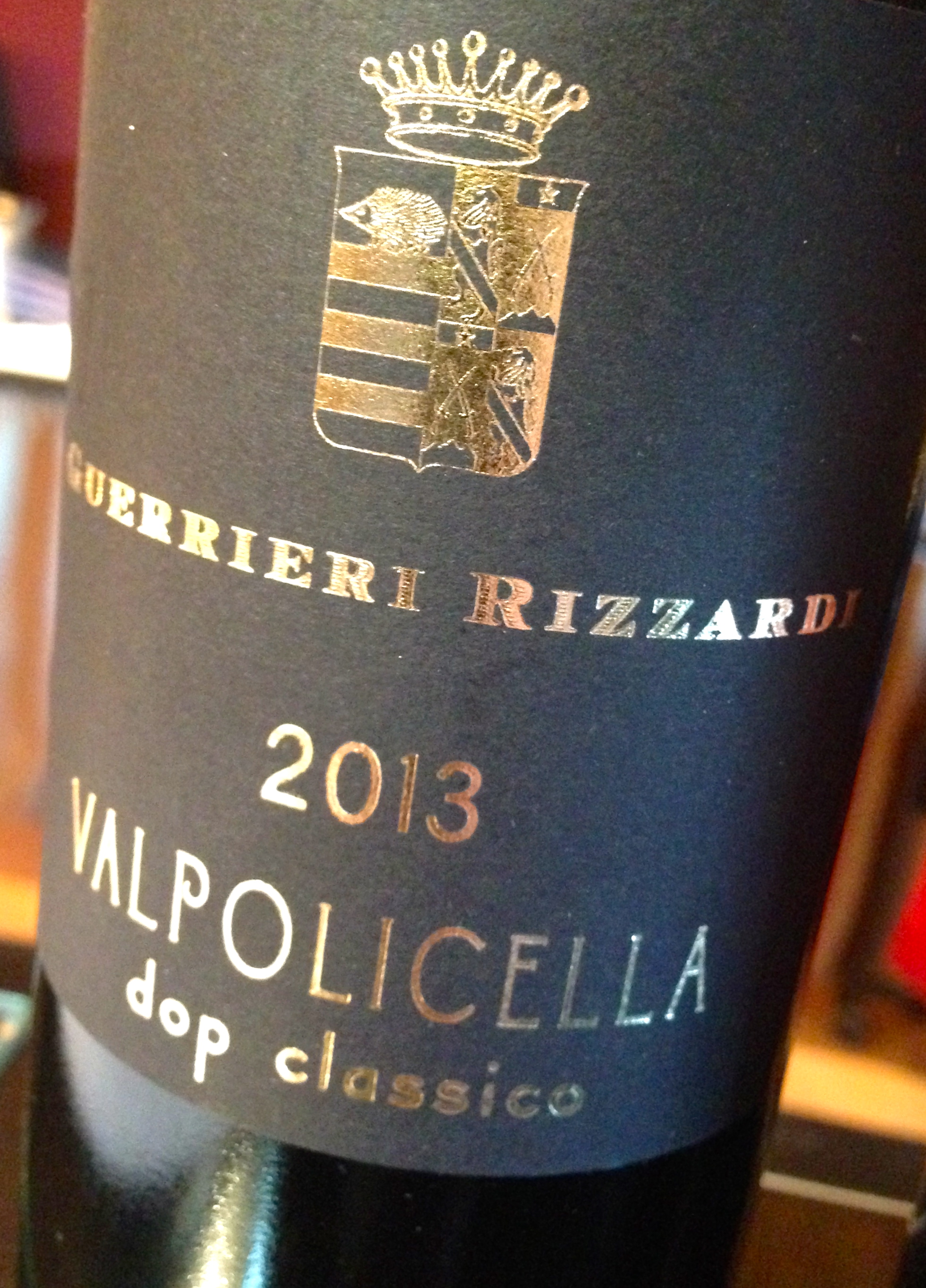 Valpolicella Classico DOP 2013. Pris 7,5 Euro. Druvor Corvina & Corvinone 80%, Rondinella 15% och Merlot 5%. Ett lättdrucket vin med doft och smak av körsbär och lite jordtoner.