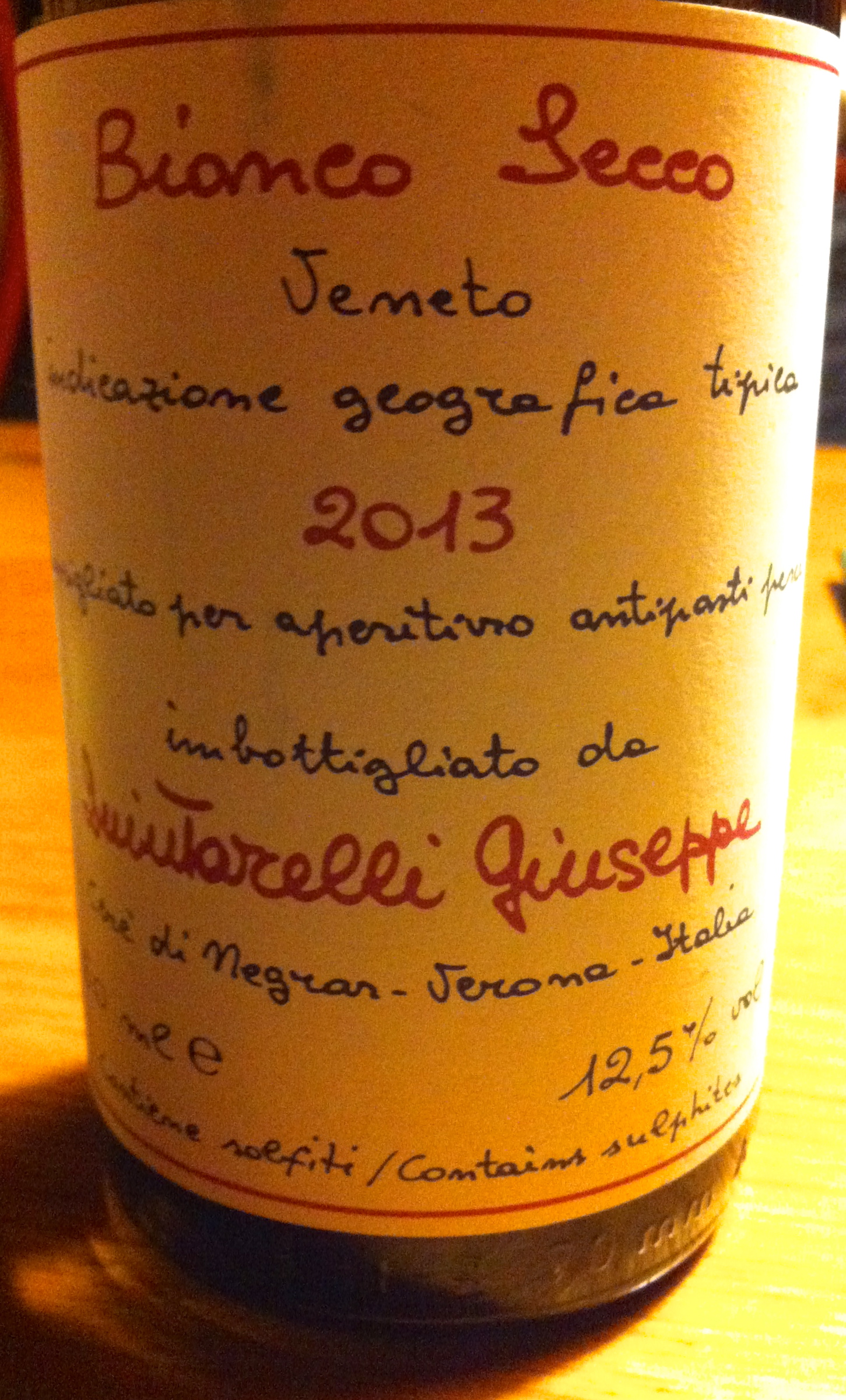 Bianco Secco IGT 2013. Pris 17 Euro. I Sverige (70150) 250:-. Druvor Garganega, Trebbiano toscana, Sauvignon blanco, Chardonnay och Saorin. Doften är fruktig och det är ett smakrikt vin med inslag av honung och aprikoser.