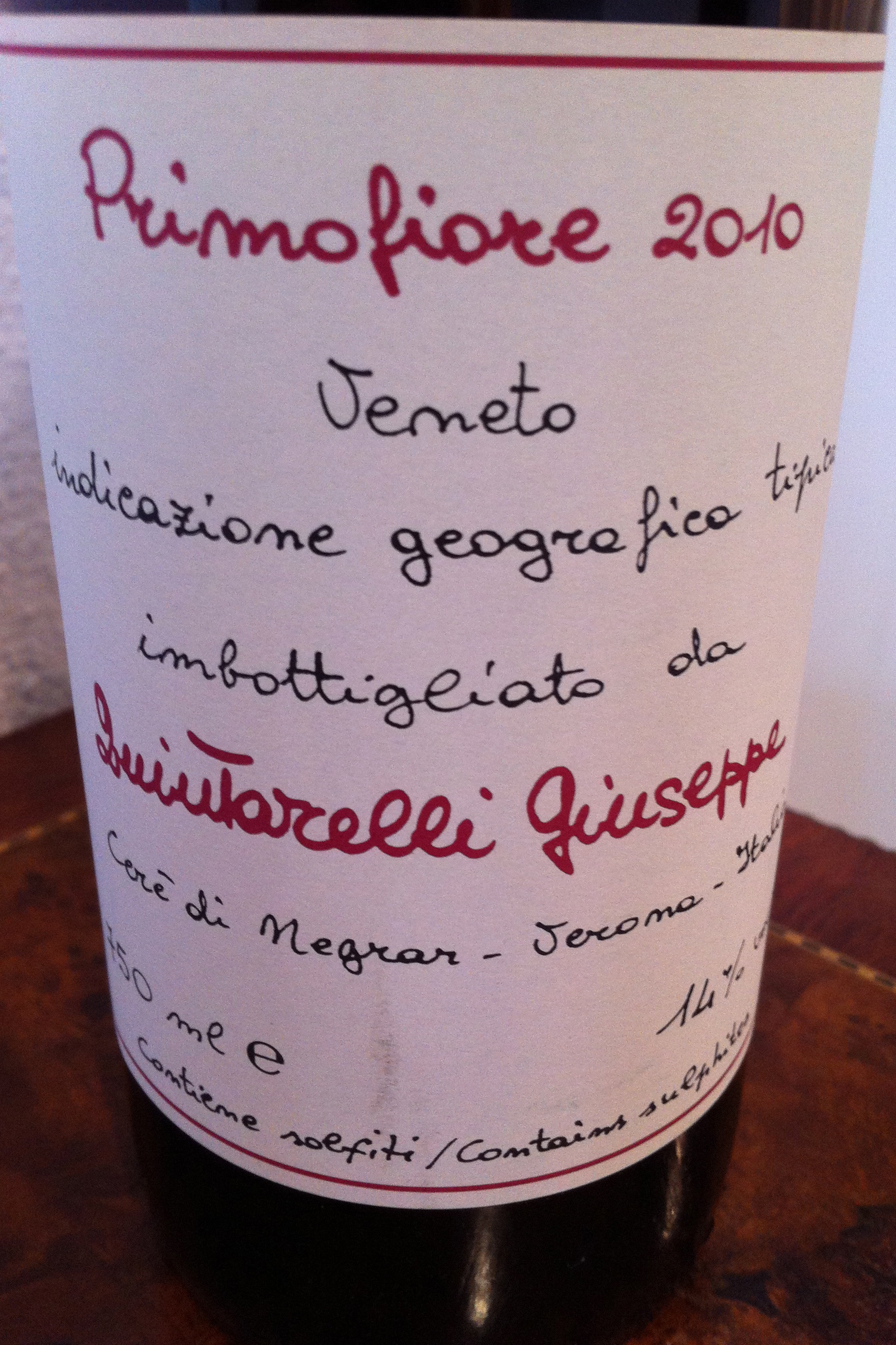Primofiore IGT 2010. Pris 22 Euro. I Sverige (71326) 357:-. Druvor 50% Corvina veronese och Corvinone och 50% Cabernet Sauvignon och Cabernet Franc. Druvorna torkas i en månad därefter ligger de på slovenska fat i 1-2 år. Doften är fruktig med viss fatkaraktär. Det här är deras vardagsvin.