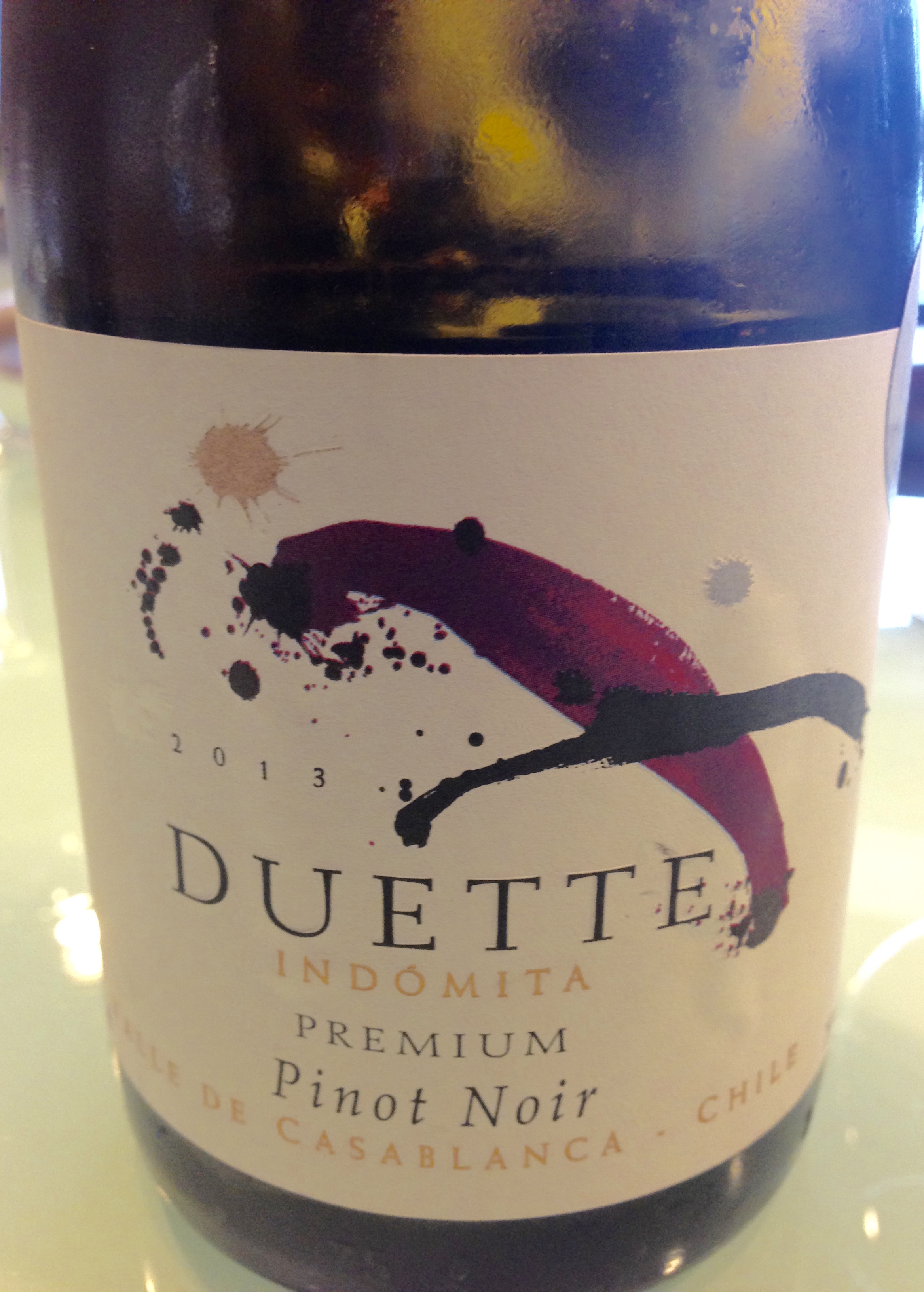 Duette Premium Pinot Noir 2014. Druva Pinot Noir. Doft och smak av jordgubbar, körsbär, skogshallon samt en lätt fatton. Tyvärr serverades vinet för kallt så att aromerna inte kom fram ordentligt. Kan lagras upp till 5 år. Pris 10.200 pesos, finns att köpa i Sverige för 99:-. Passar till sallader och ljusa kötträtter.