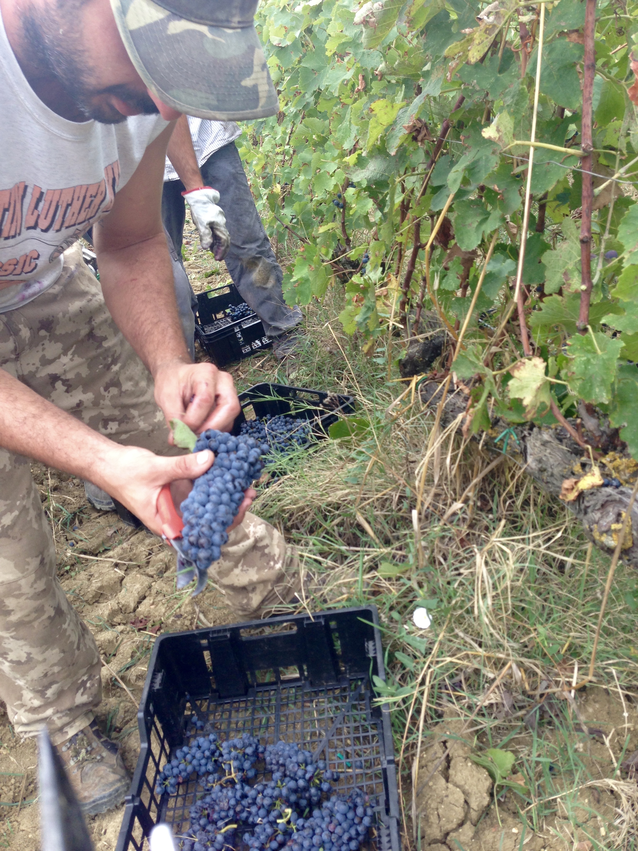 Efter skörden skiljs druvorna från sina stjälkar i en särskild maskin och därefter påbörjas själva tillverkningen – den processen återkommer jag till senare.