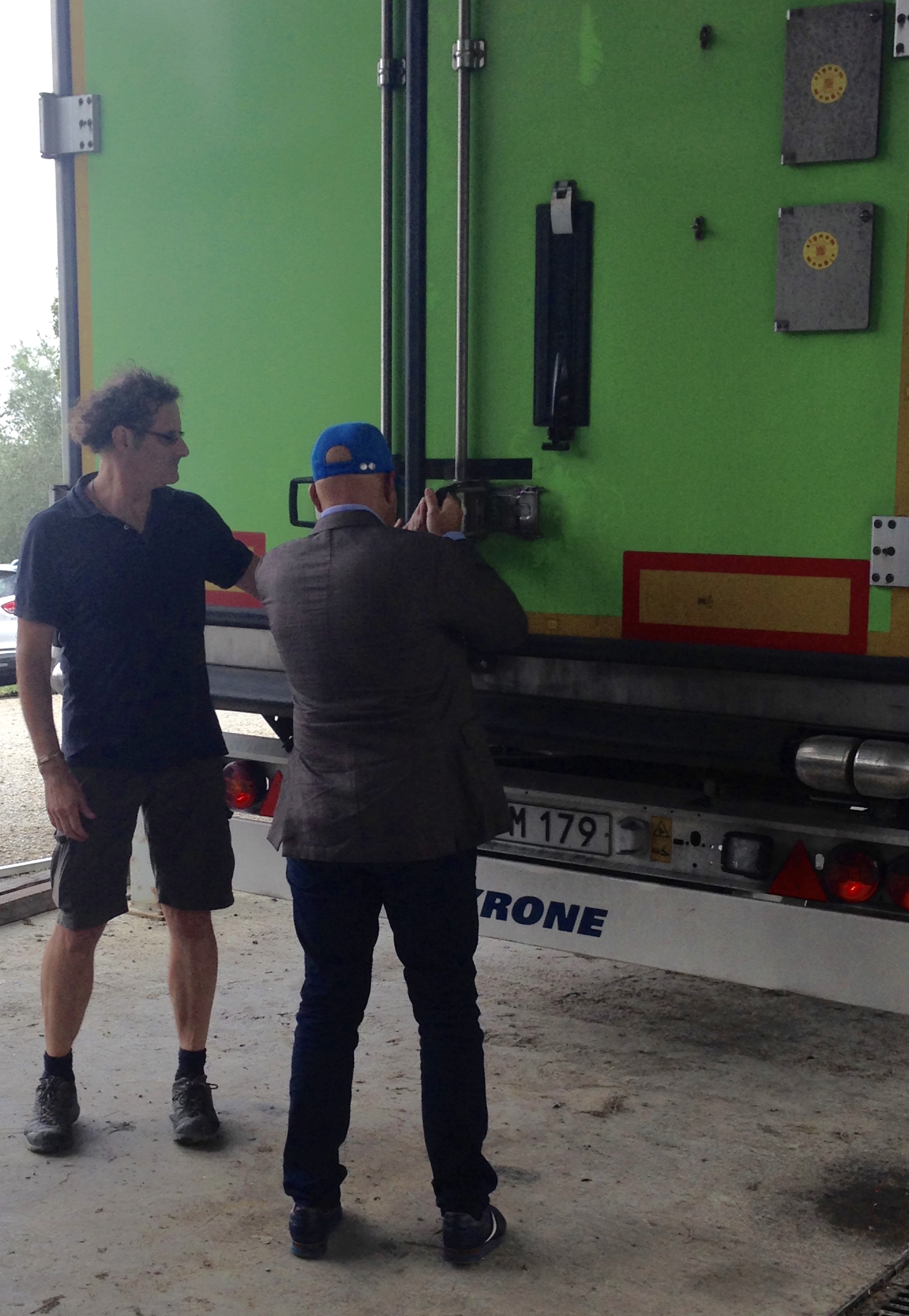 Det var fredag i Toscana. De nyskördade druvorna lastades på en lastbil/kyltransport för att fraktas till Simrishamn för att bli vin.