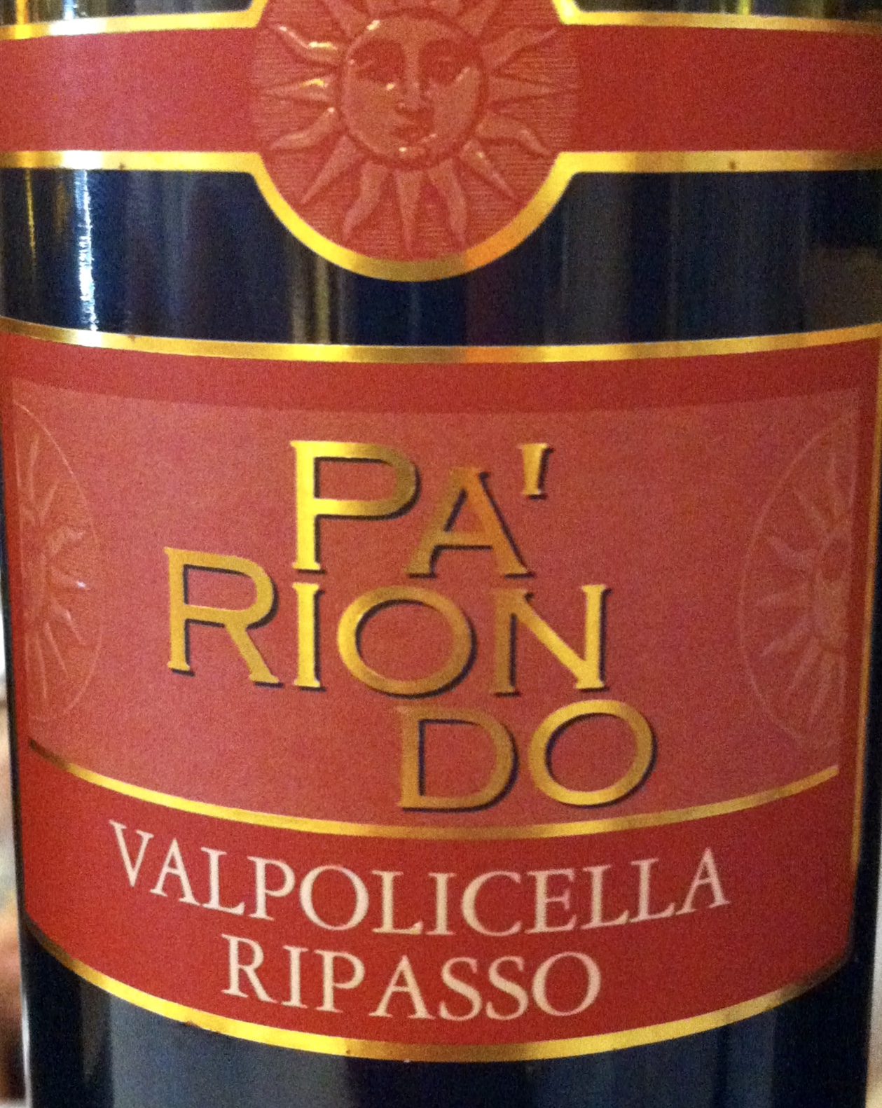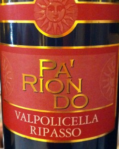 Pa’ Riondo Ripasso DOC 2013, druvor Corvina Veronese 65%, Rondinella 25%, Corvinone 10%. Doft och smak av körsbär, björnbär, plommon och en lätt fatton. Pris 11 EUR på vingården i Sverige 202 SEK.