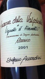 Hos Stefano Accordini finns det även möjlighet att köpa äldre årgångar. Jag samlar på årgång 1997 och här hittade jag det till min stora glädje. Det är numera mycket svårt att få tag på den årgången. De anser att 2001 var deras bästa år för Vigneto il Fornetto och den fanns också till försäljning.