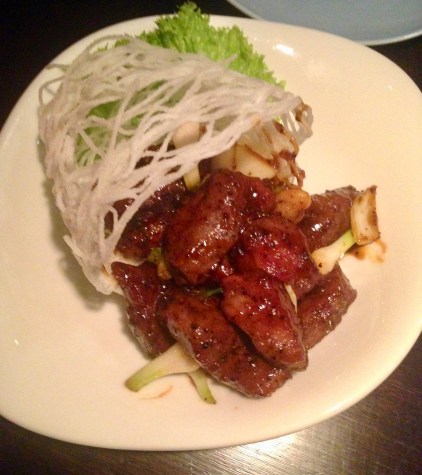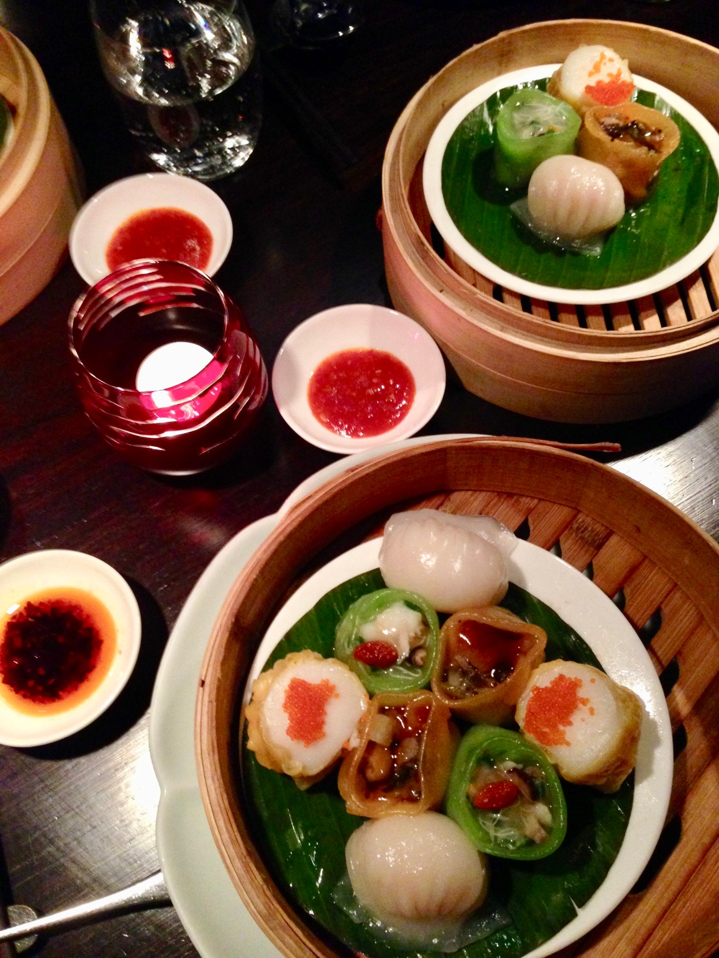 Hakkasan är stor restaurang med två våningar som kan ta upp till 220 gäster. Inredningen går i svart och belysningen är dämpad. På nedervåningen finns en stor bar som erbjuder det mesta i dryckesväg. Alla ”signature” menyer” har som förrätt olika varianter på Dim Sum. Huvudrätterna skiljer sig åt men är minst fyra stycken, dessutom ingår dessert. Vinlistan är variationsrik och håller bra priser med tanke på nivån på restaurang. Det här är den bästa kinesiska restaurangen jag har besökt i Europa. Nedan ser ni några av de rätter som vi åt.