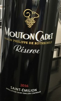 Mouton Cadet Réserve 2016. Frankrike, Bordeaux, Saint-Émilion, 159 kronor, 75 cl, alkoholhalt 13,5%. Druvor: merlot 87% och cabernet franc 13%. FS(70617). Ett fruktigt vin med inslag av plommon, björnbär, lakritsrot och med lena tanniner. Passar bra till en grillad köttbit gärna med rotfrukter, grytor och kyckling.
