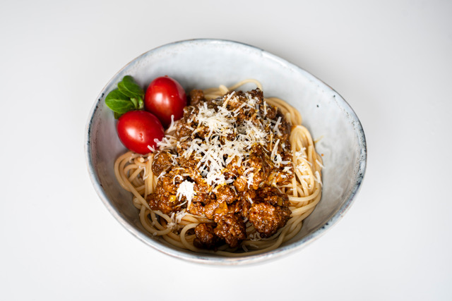 - Fräs finhackad lök och vitlök tillsammans med köttfärsen i cirka en msk raps- eller olivolja.