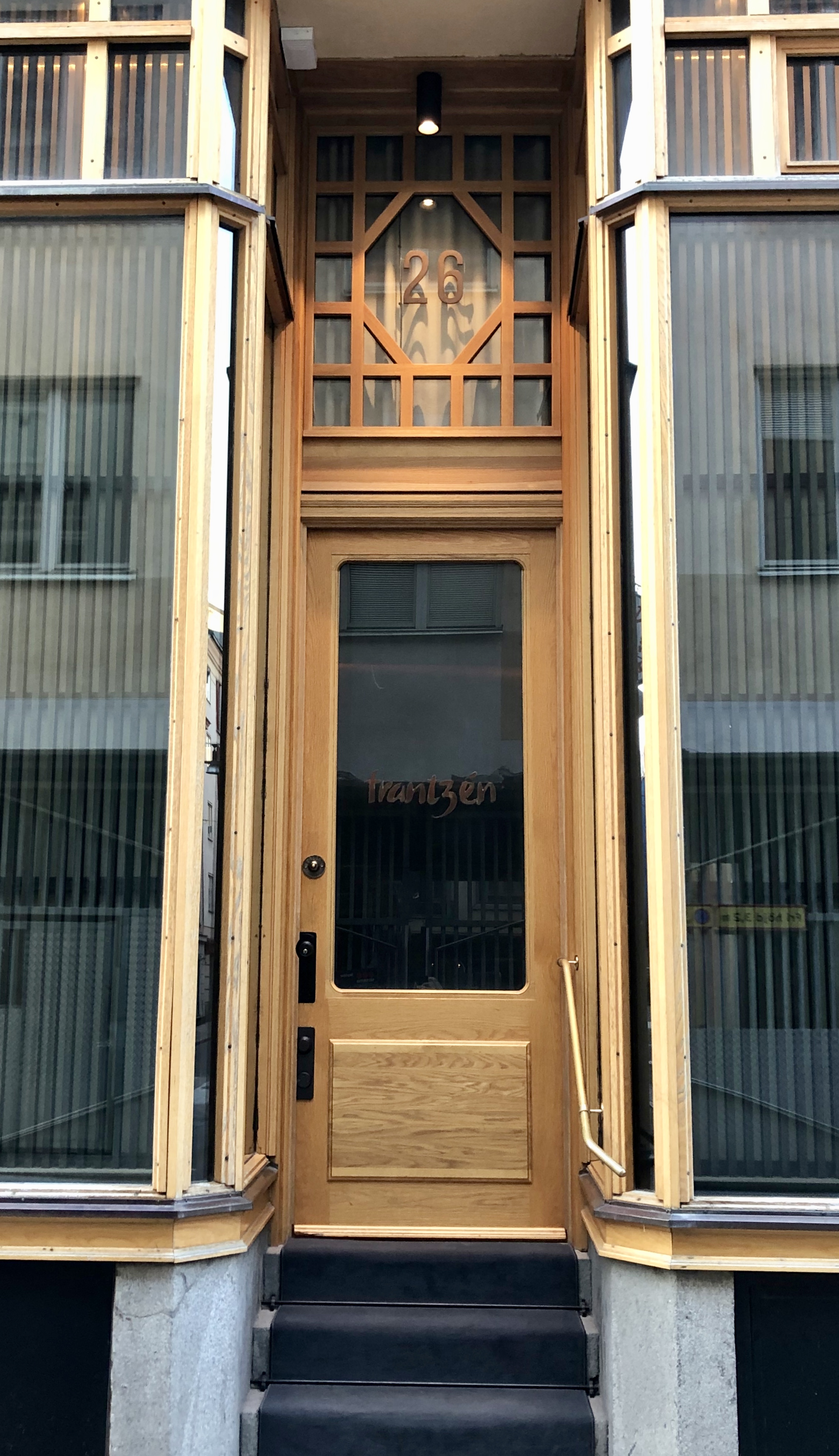 Att äta på Frantzén är en upplevelse i sig inte bara att bli mätt och belåten. När du kommer till restaurangen ser den inte mycket ut för världen. Det är i princip endast en dörr på en undanskymd gata. Du ringer på en klocka och blir mottagen att stiga in. Därefter tar du en hiss upp till översta våningen/lobbyn. Där sitter förväntansfyllda gäster i bekväma designerfåtöljer med utsikt över Stockholms takåsar.