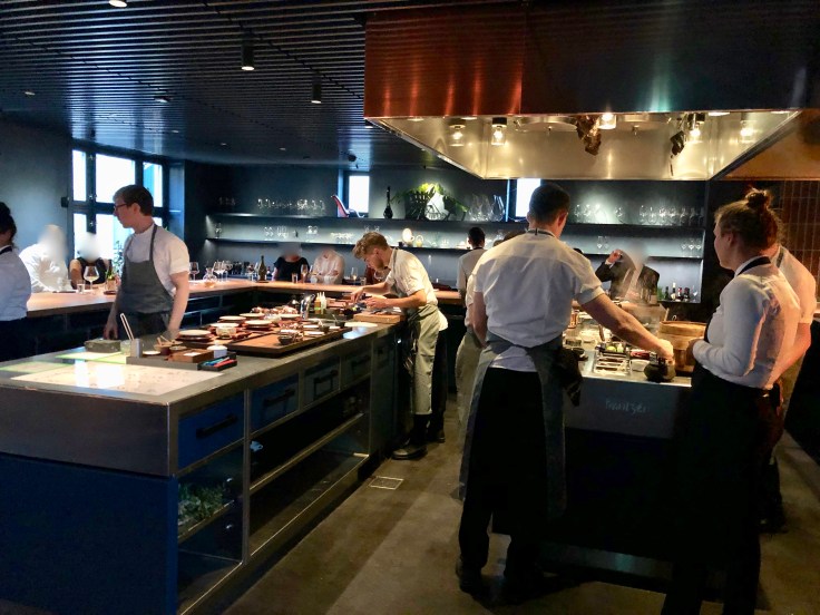 Det finns endast 23 sittplatser och de flesta sitter vid en bardisk runt köket där den ena efter andra rätten komponeras. Tre vanliga bord finns även i restaurangen och slutfinishen av rätterna presenteras även vid dessa bord.