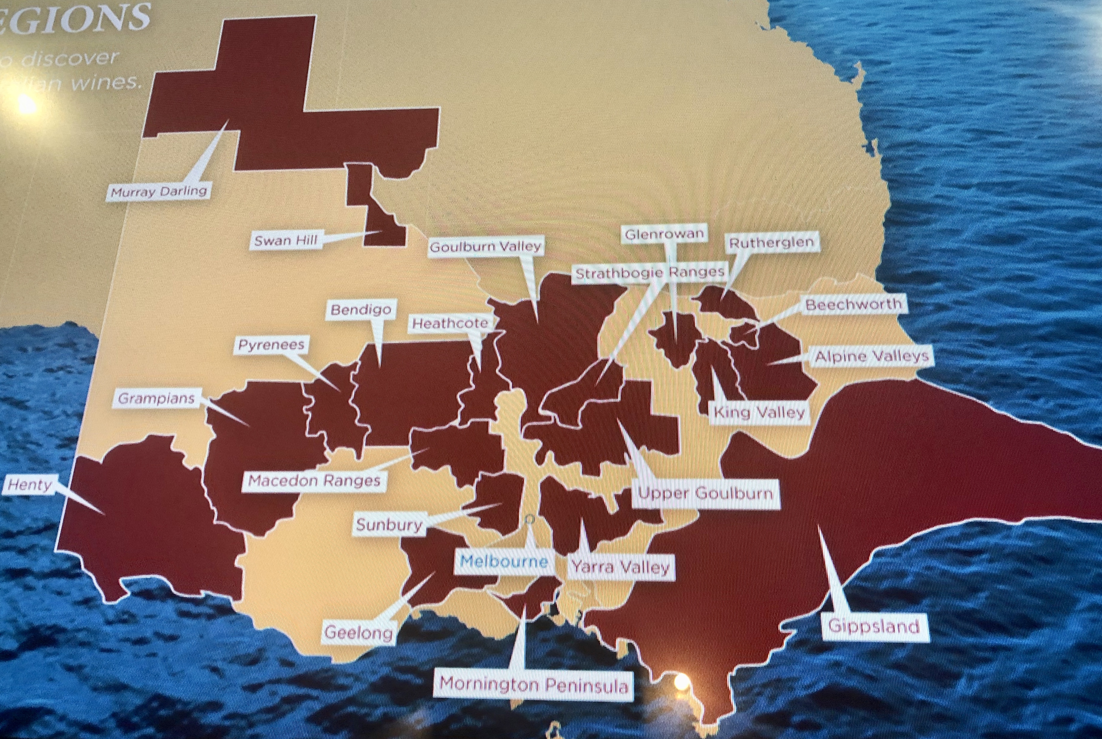 Yarra Valley. Ligger en knapp timme med bil från Melbourne i delstaten Victoria. Här framställs viner främst på chardonnay och pinot noir, samt mousserande viner.