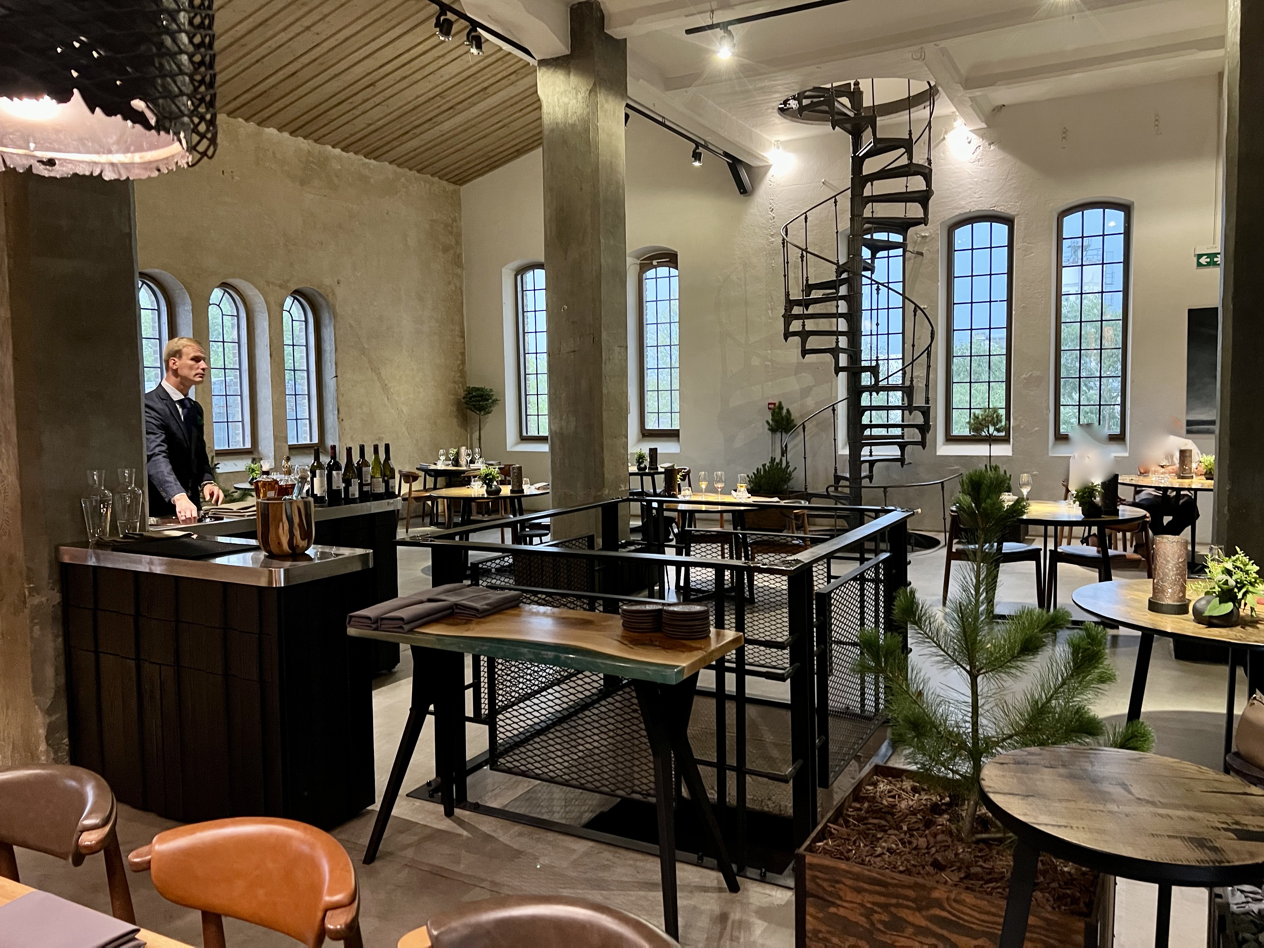 Kocken Max Cekot har arbetat på flera ställen runt i Europa bland annat hos Gordon Ramsay i London innan han och hans fru Natalia sålde allt de ägde och investerade i en träfabrik som de omvandlade till sin drömrestaurang. De har designat allt i restaurangen själva men bevarat delar av den historiska byggnaden. En av detaljerna är den hundraåriga spiraltrappan som vi möts av när vi kliver in på bottenvåningen och som slingrar sig upp till restaurangen. Matsalen är öppen med stora fönster och sparsmakad inredning, i centrum ligger det öppna köket där man kan se allt som händer.